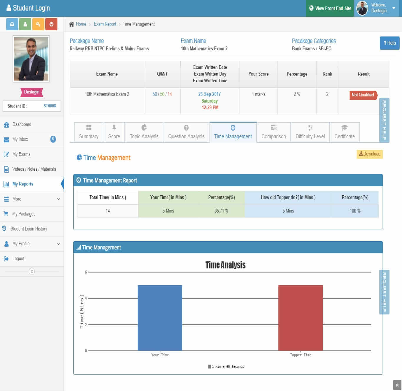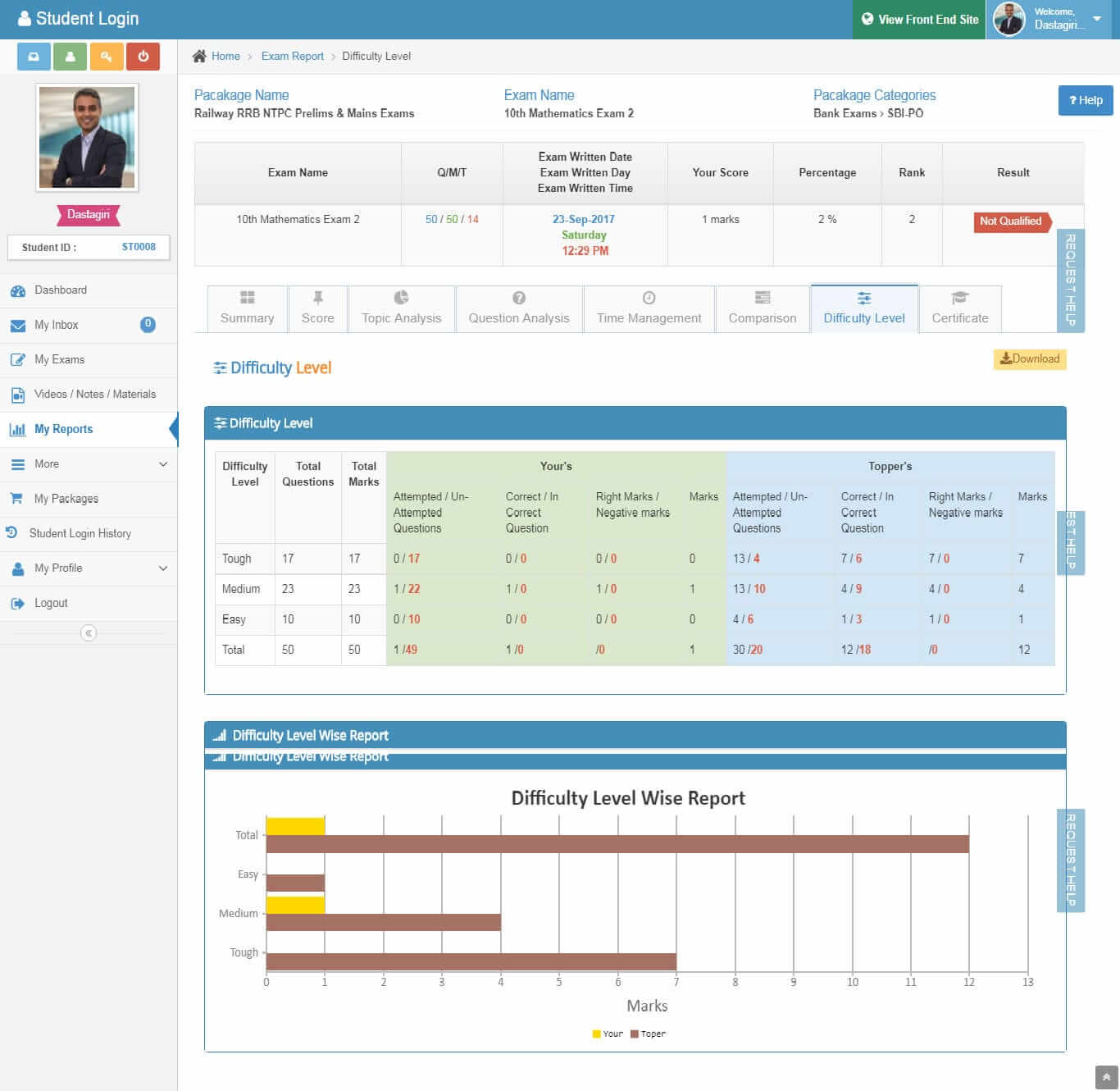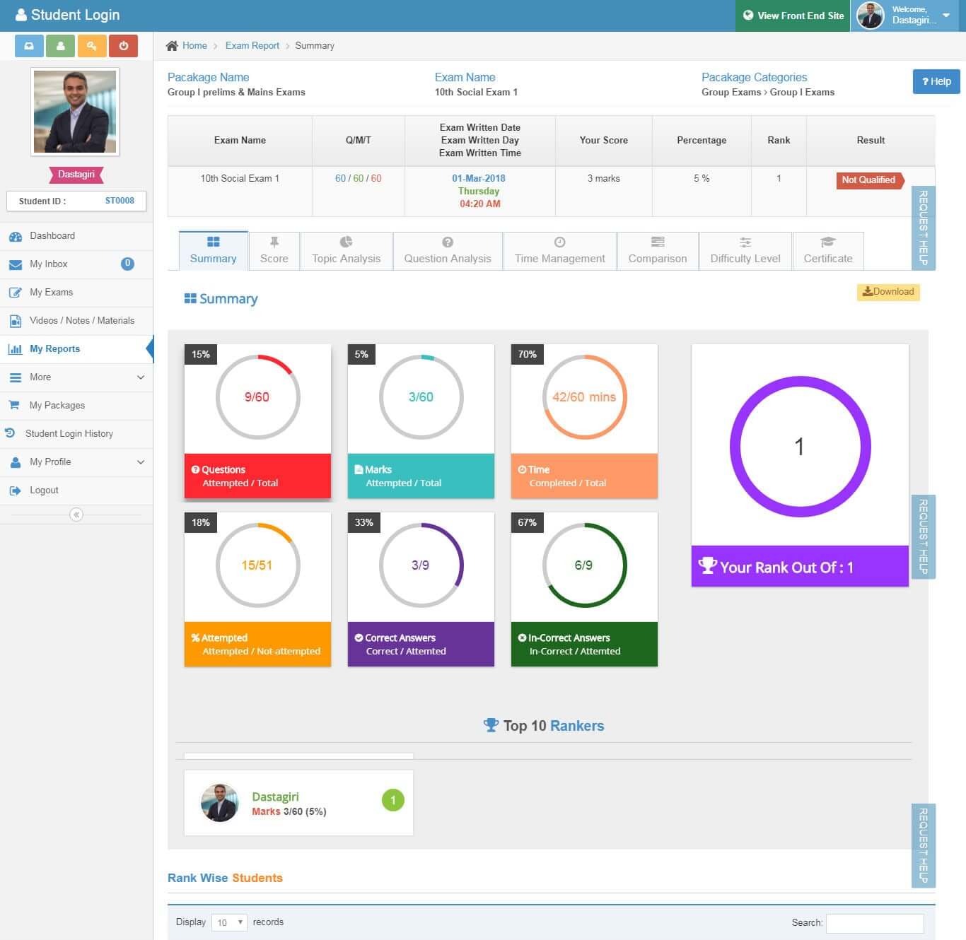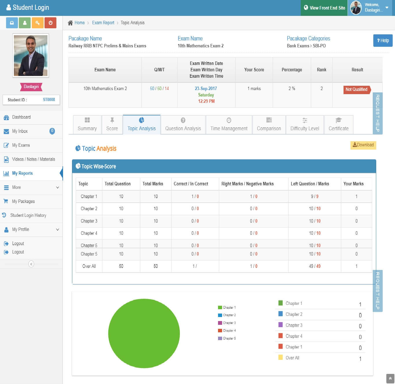 - Score: Topic-wise score, Score Analysis