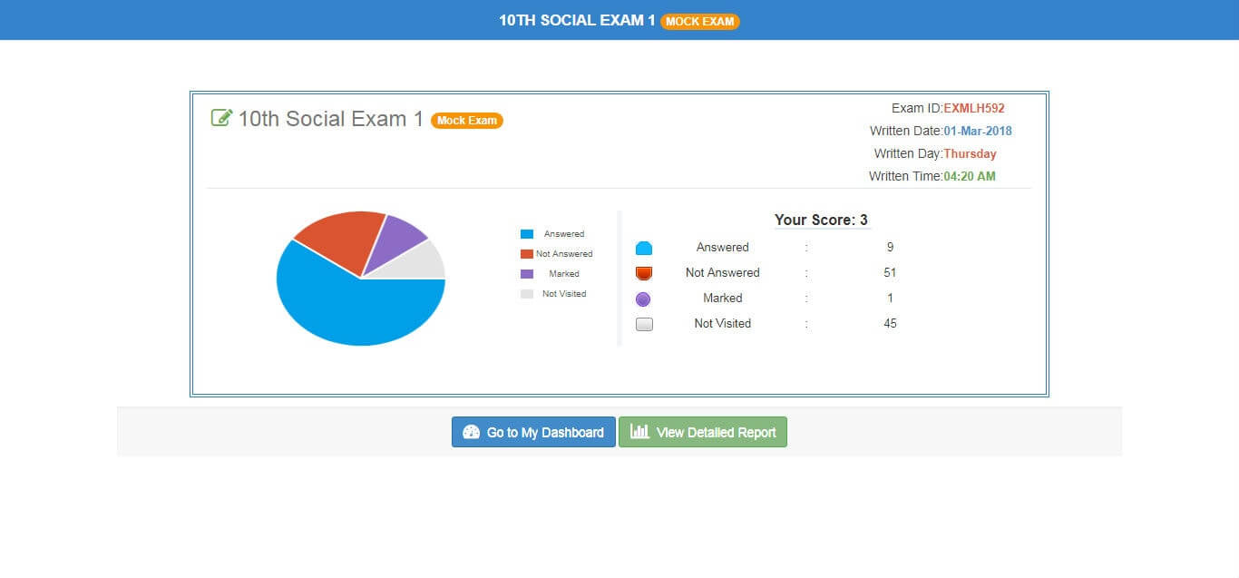 - Exam summary (topic wise answered ,unanswered ,correct and incorrect)